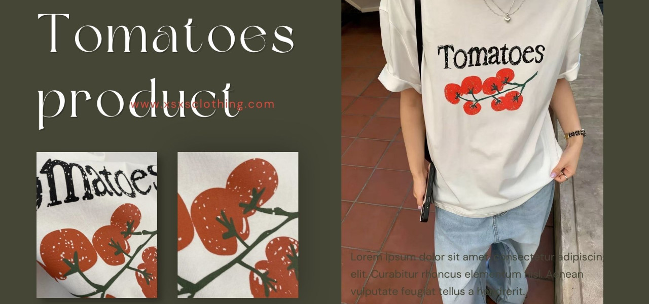 春夏番茄印花慵懶圓領棉質寬鬆短袖上衣