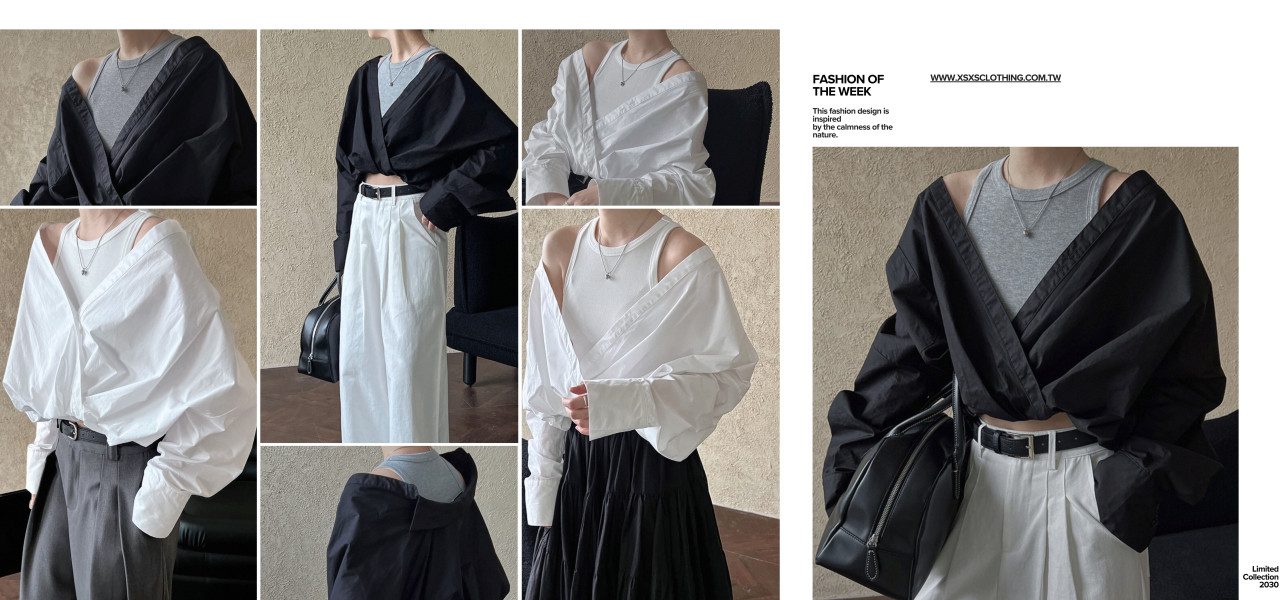 絕美知性polo領寬鬆挺版v領長袖襯衫/v領襯衫