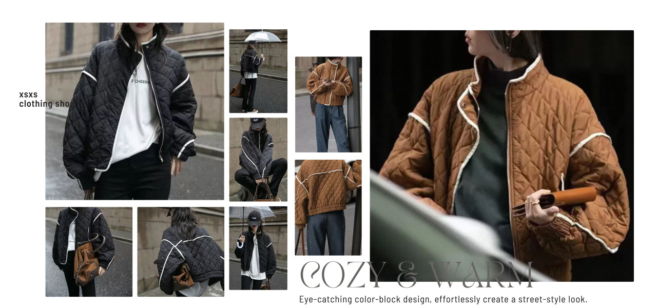撞色滾邊設計 菱格夾棉休閒廓形寬鬆夾克外套