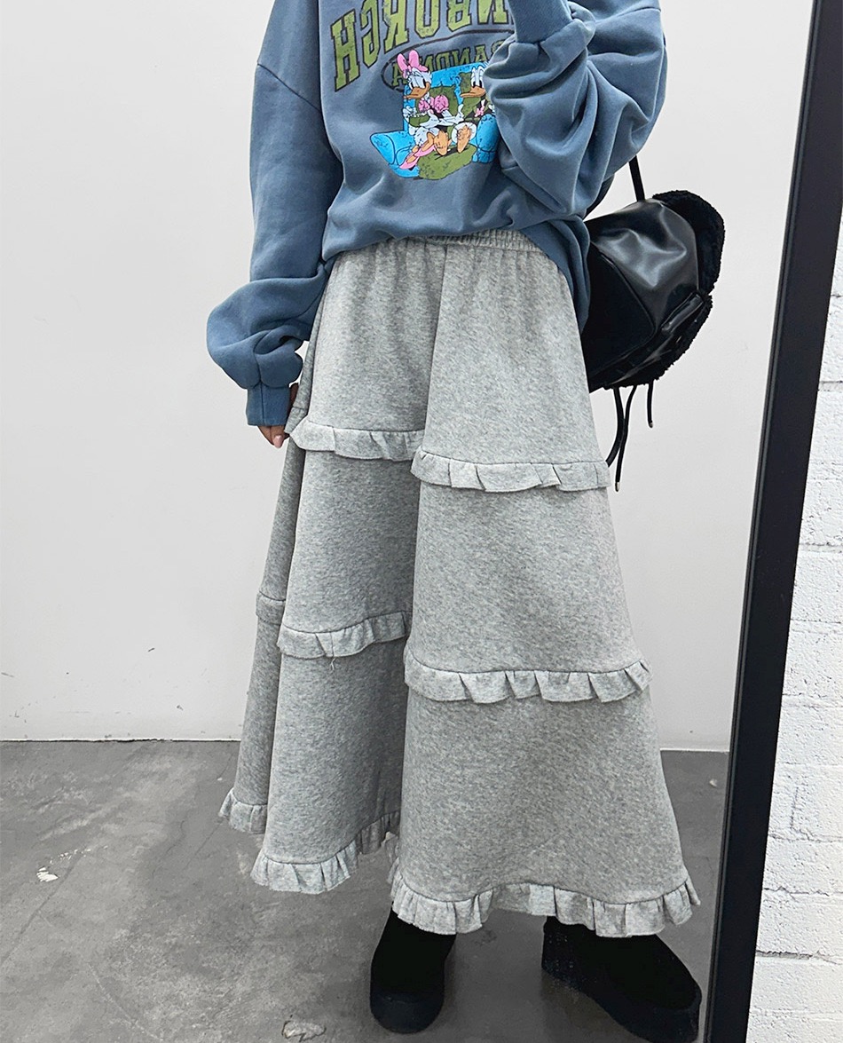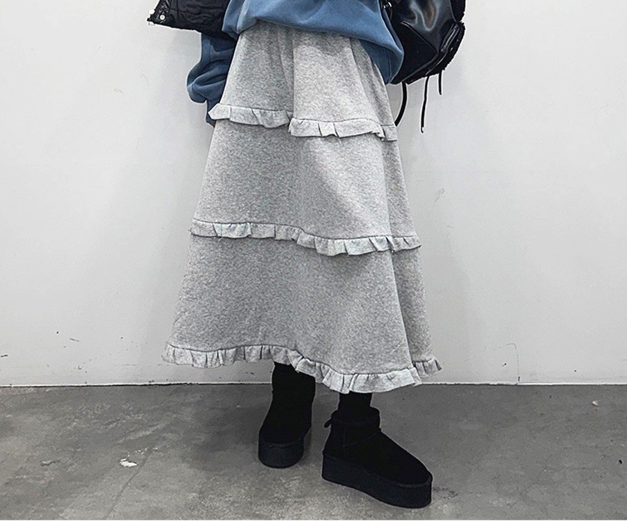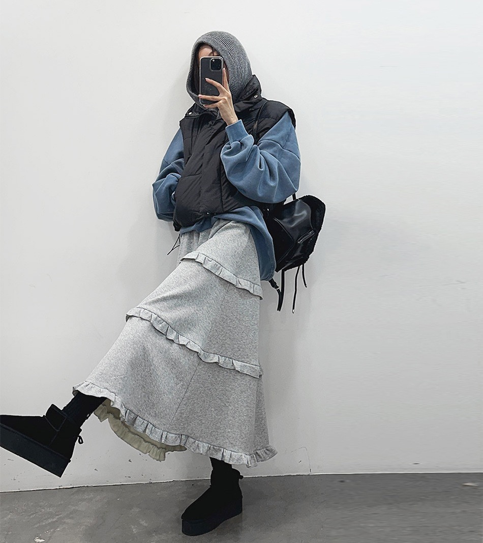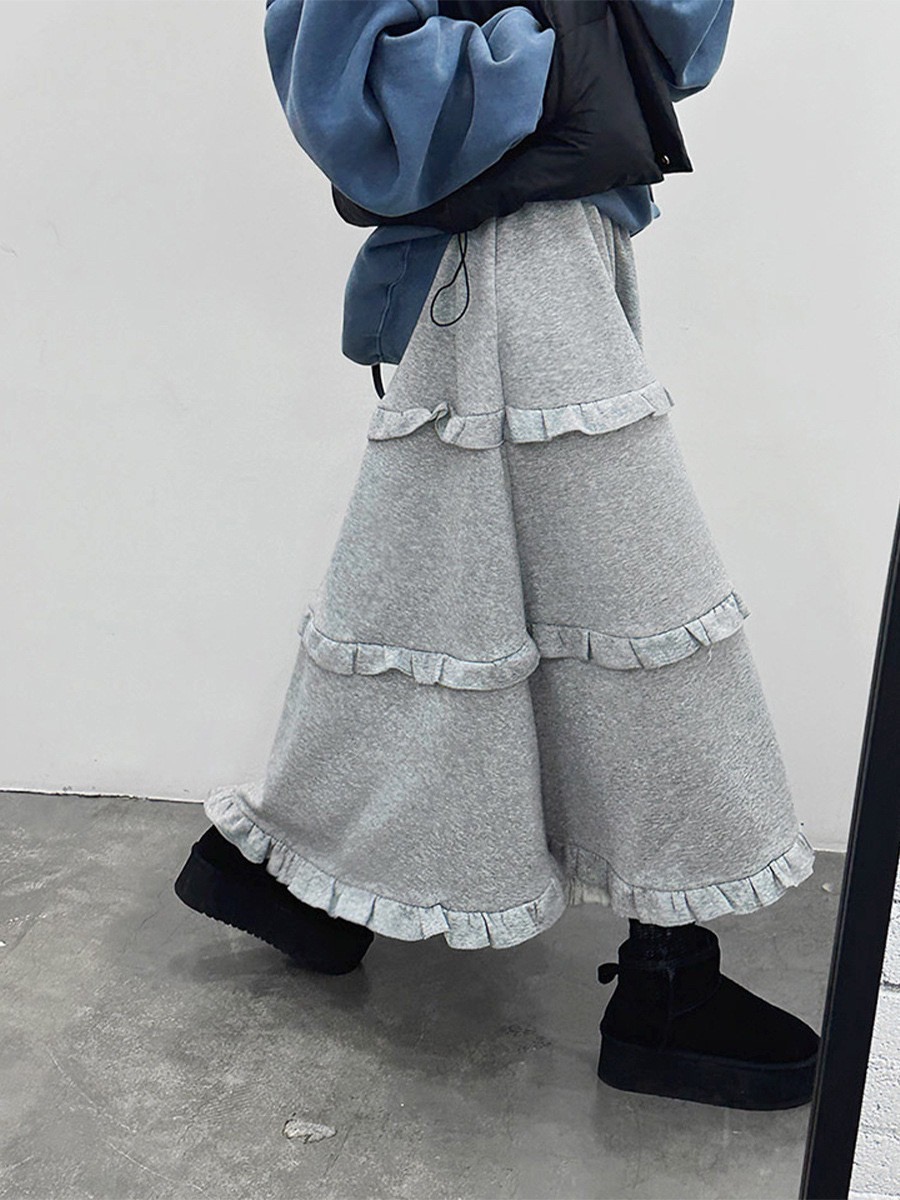 韓系百搭荷葉邊 休閒A字蛋糕長裙