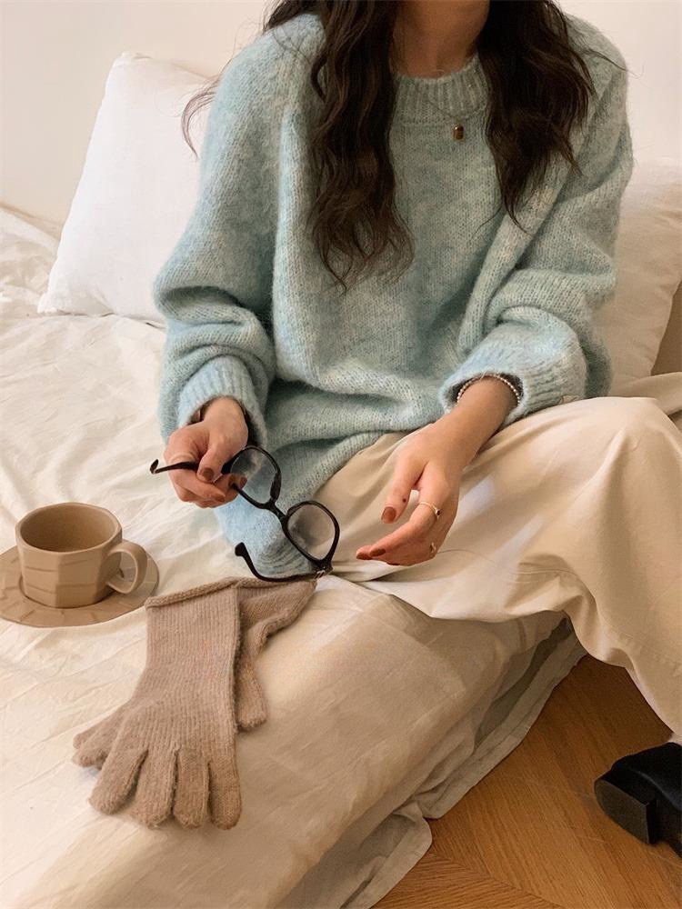 寬鬆套頭毛衣圓領慵懶風長袖軟糯花色針織衫